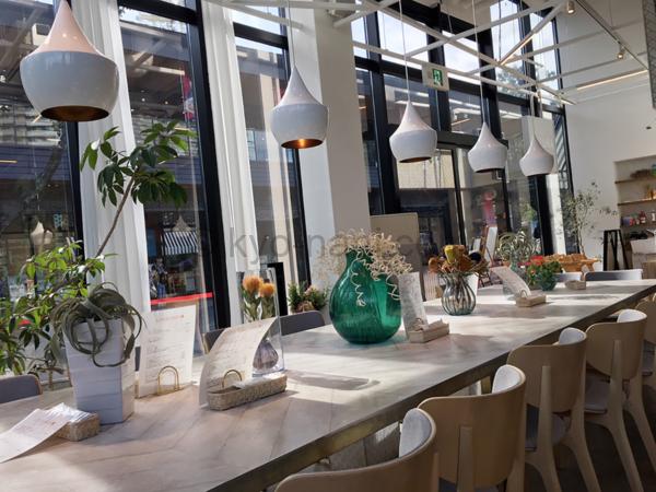 店内は白を基調としていてガラス張りで天井も高く、とても明るく開放的な空間です。