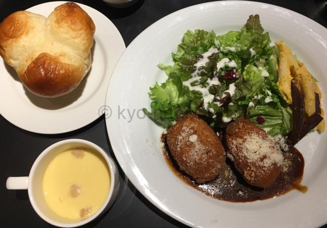 ガーブドレッシングのランチ「ポルチーニ茸のクリームコロッケ」と「スープ」と「湯種パン」のセット
