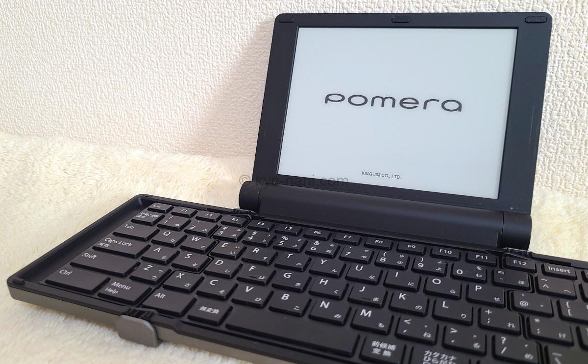 pomera(ポメラ)をキーボードと並べている写真