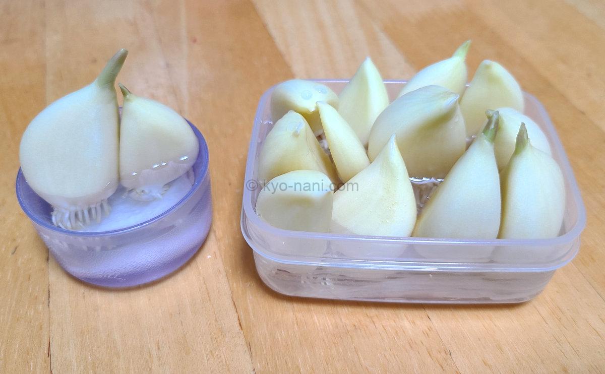 球根状態だろうと粒状態だろうとみなつるんとした状態に剥いてしまいます。
