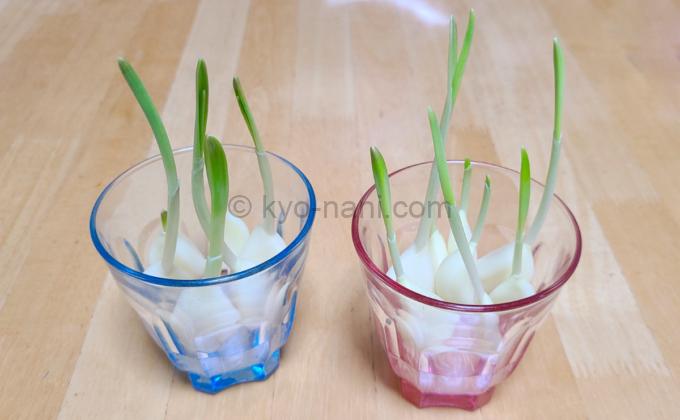 今回のにんにくは実にシンプル、日光いらず。そして豆苗どころじゃない成長速度なので本当に手軽で良かったです。