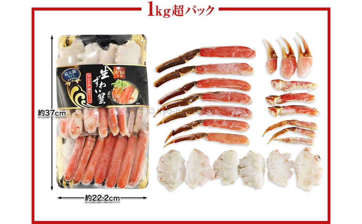 401:超特大10L~8L生ずわい蟹半むき身満足セット 1kg超(総重量約1.3kg)