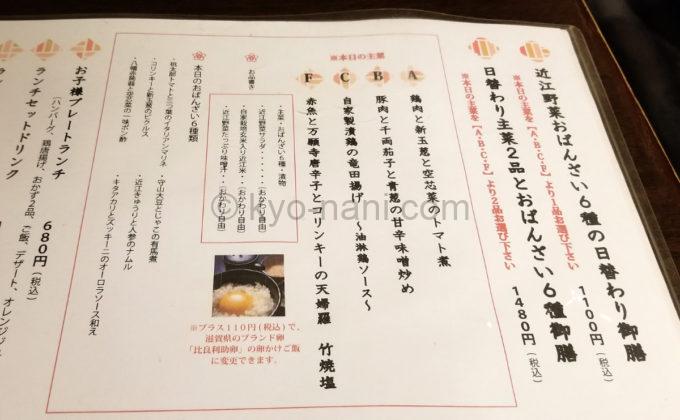 ランチメニューは定食スタイルで唐揚げ、がめ煮、焼き魚など。