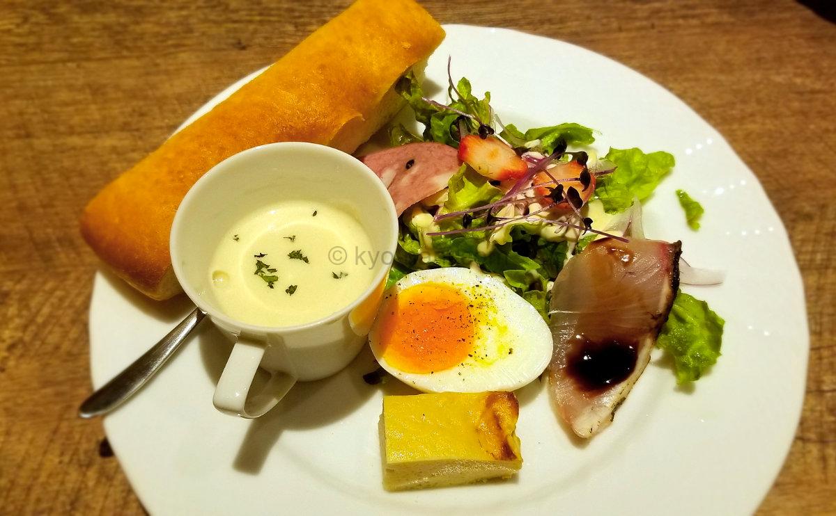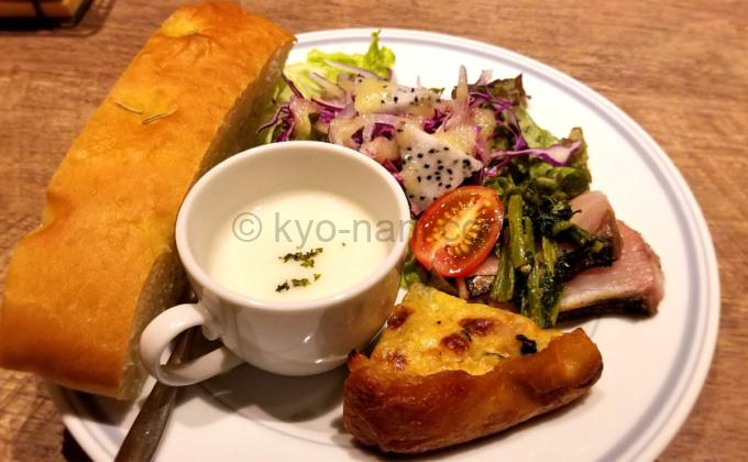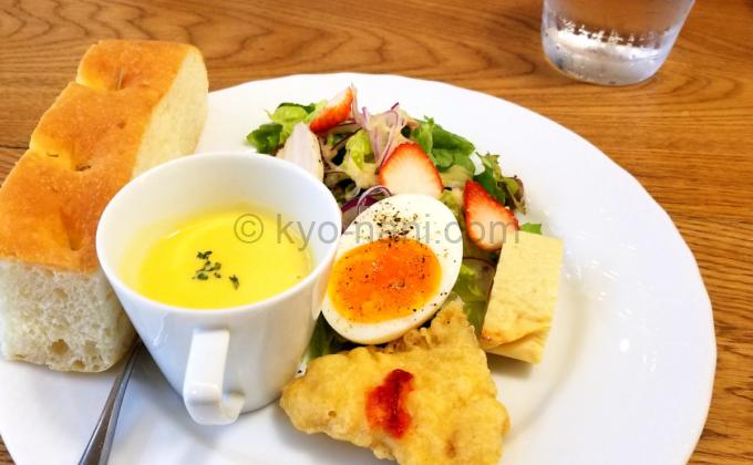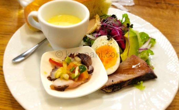 イタリア食堂 broadのランチに付く前菜とスープとフォカッチャ