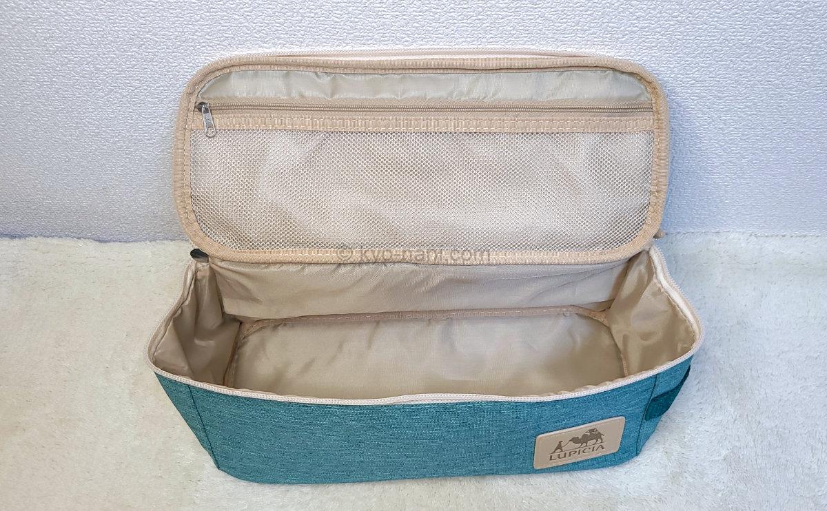 中もしっかりマチ付き、ファスナー付きのメッシュポケットまで付いています。これ特典につけちゃうんだすごい…っていうクオリティです。