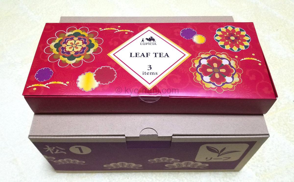 今回たしろが選んだのは「迎春リーフティー3種セット」。上の赤い箱がそれです。