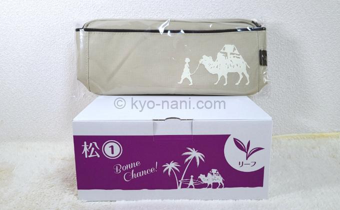 下の箱が福袋「松」。上のポーチっぽいのは「松」「竹」どちらかを購入した際に選べるおまけです。