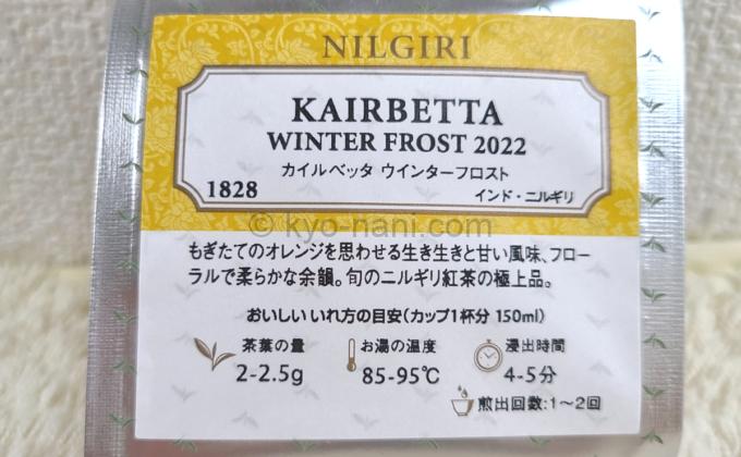 毎回言ってて申し訳ないんですが大好きなんですカイルベッタウインターフロスト。ニルギリ紅茶です。