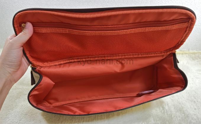 中もしっかりマチ付き、ファスナー付きのメッシュポケットまで付いています。前のと同じくとってもいい出来。