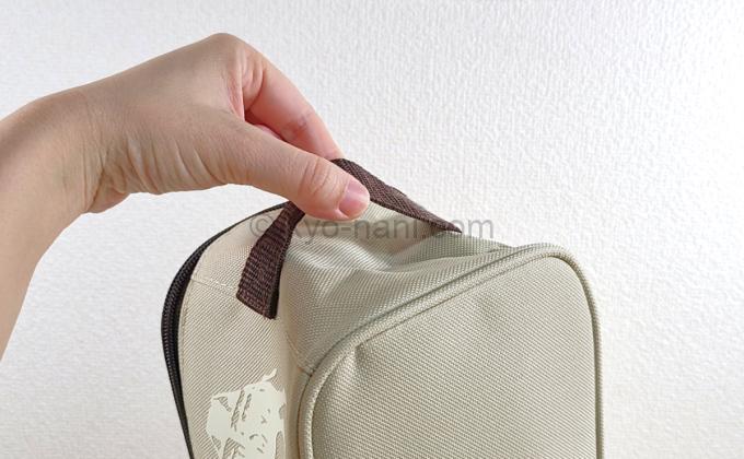 このバッグのときめいたポイントがここ。サイドにも持ち手が付いてて、縦持ちできるんですよ。