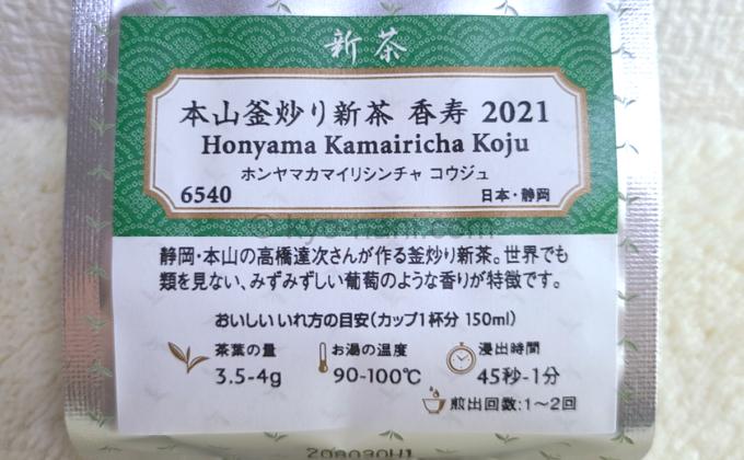 本山釜炒り新茶 香寿(ホンヤマカマイリシンチャ コウジュ) 2021 25g 1,850円