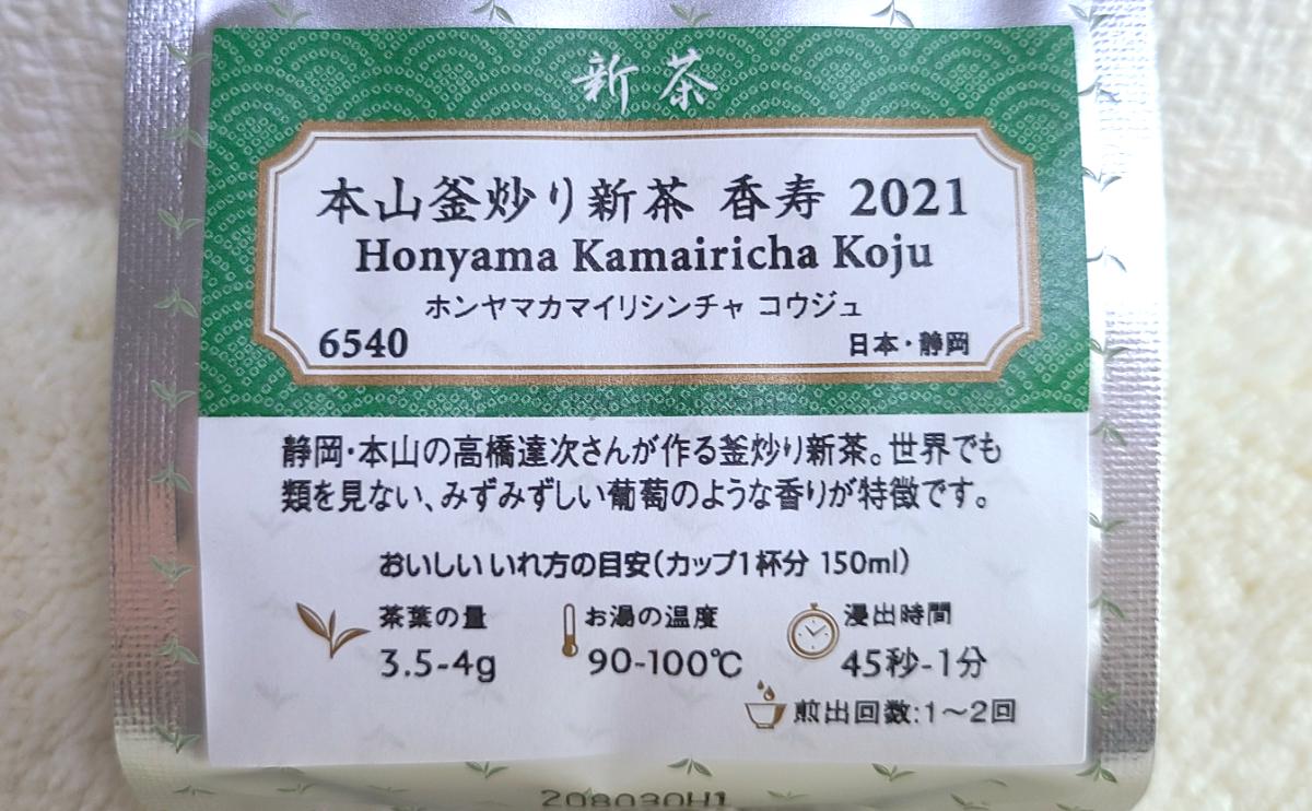 - 本山釜炒り新茶 香寿(ホンヤマカマイリシンチャ コウジュ) 2021 25g 1,850円
