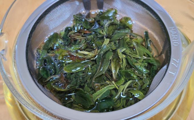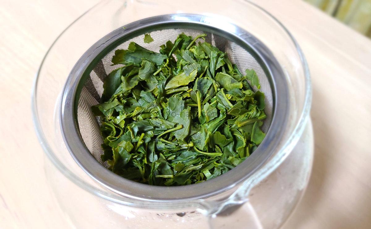 淹れた後の茶葉はとっても鮮やか。お浸しにするとまたお茶の味を楽しめて美味しいです!