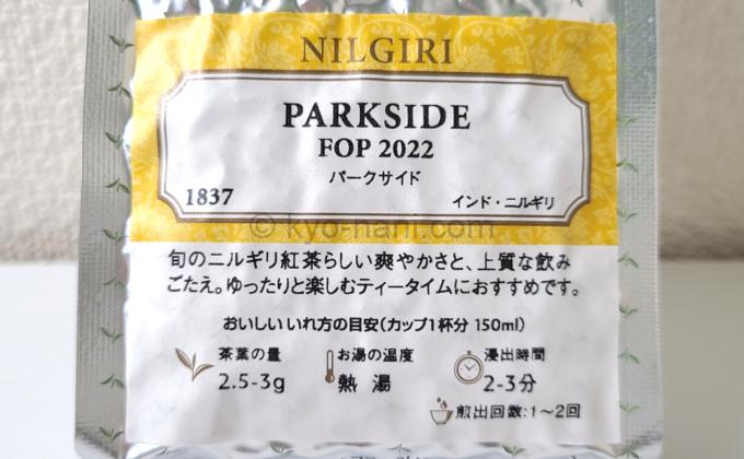 この子も初めましての銘柄、インドのニルギリという場所にありますパークサイド茶園の紅茶です。