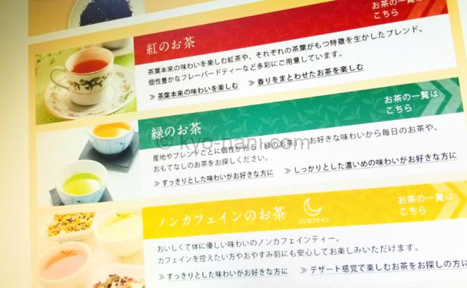 オンラインストア内には、自分の好みに合うお茶を紹介してくれるページがあります。