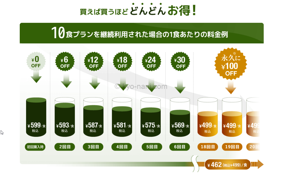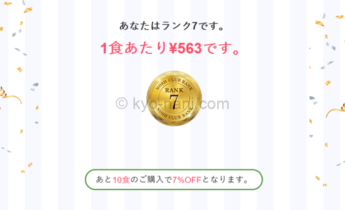 初回利用時に自動的に入会となり(別途料金は不要)、累計食数によりどんどん割り引かれていくので食べれば食べるほどお得になります。