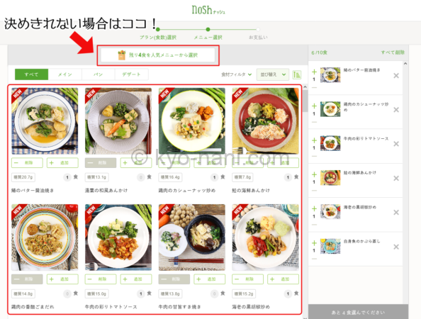 noshは、マイページから代替メニューを事前に選んでおく事ができます。