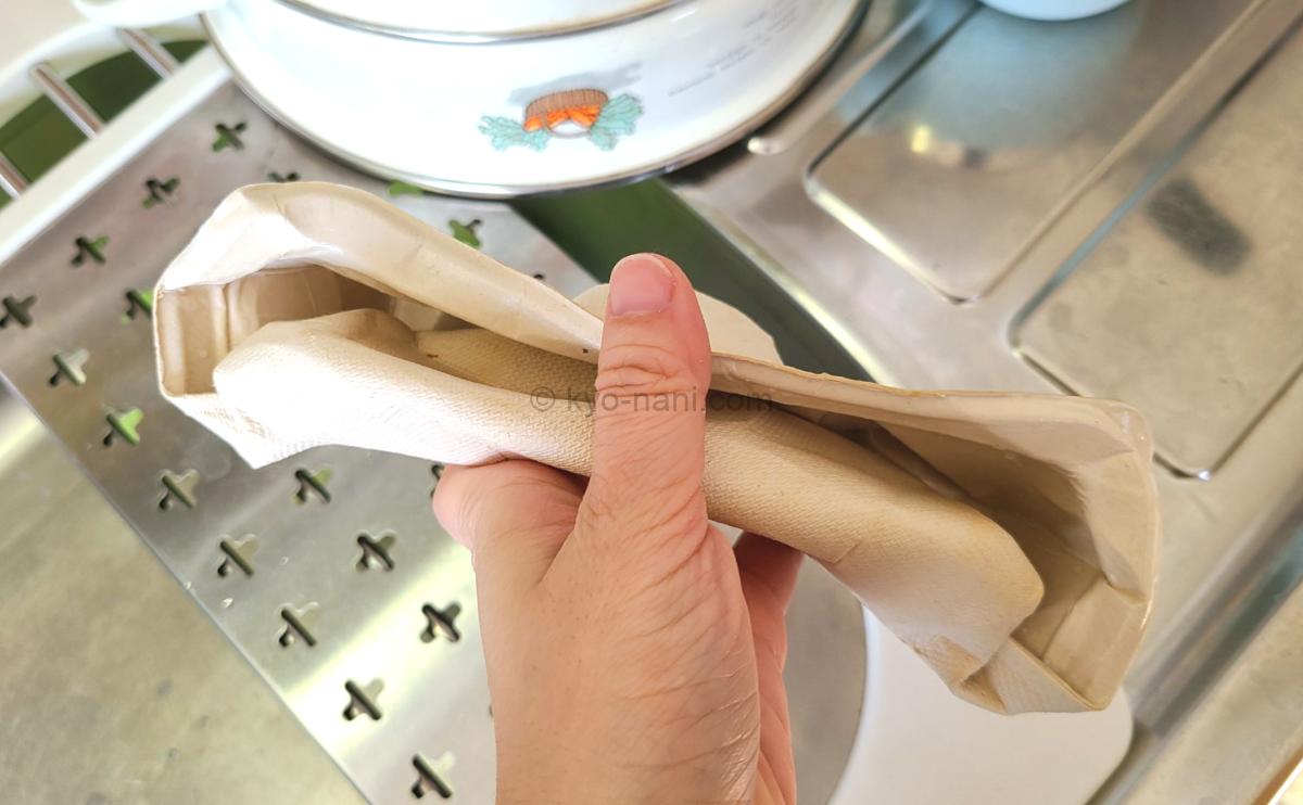 食べ終わった容器は軽く水で流して、少し力をいれて…こう、クシャっと!