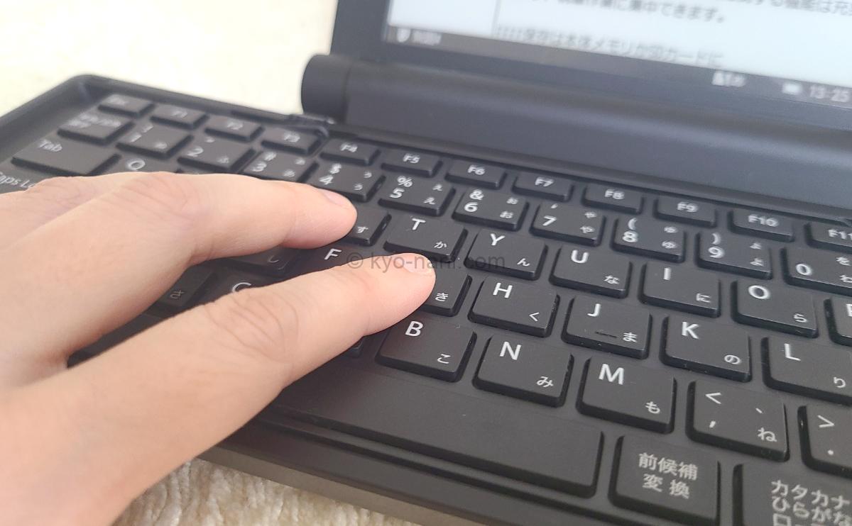pomera(ポメラ)のキーボードを触っている写真
