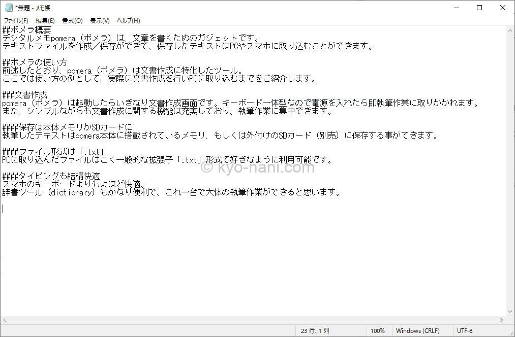 pomera(ポメラ)で作成したテキストファイル