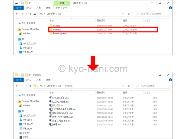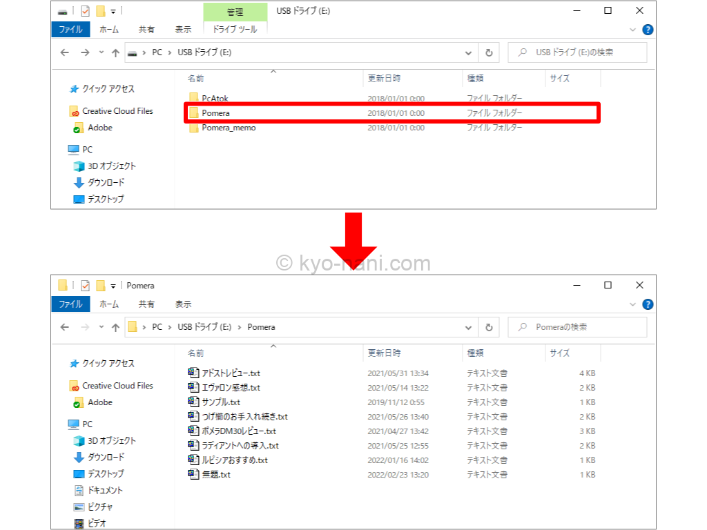 pomera(ポメラ)をPCにつないだ時のフォルダ構造の画像