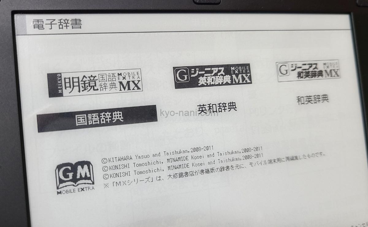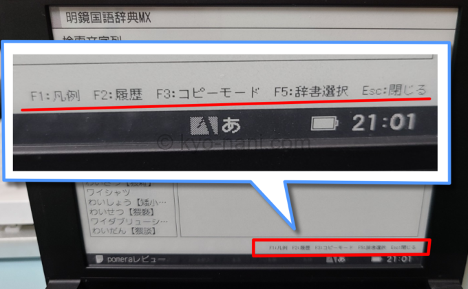 pomera(ポメラ)の電子辞書画面の写真