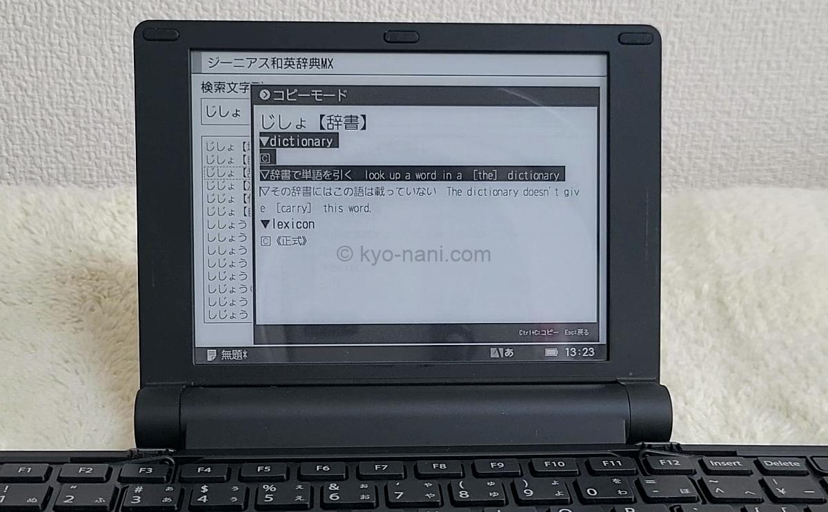 辞書機能を使う時。後述しますがpomera(ポメラ)の辞書は、辞書の内容をコピーして作成中の文章にペーストできる機能があります。