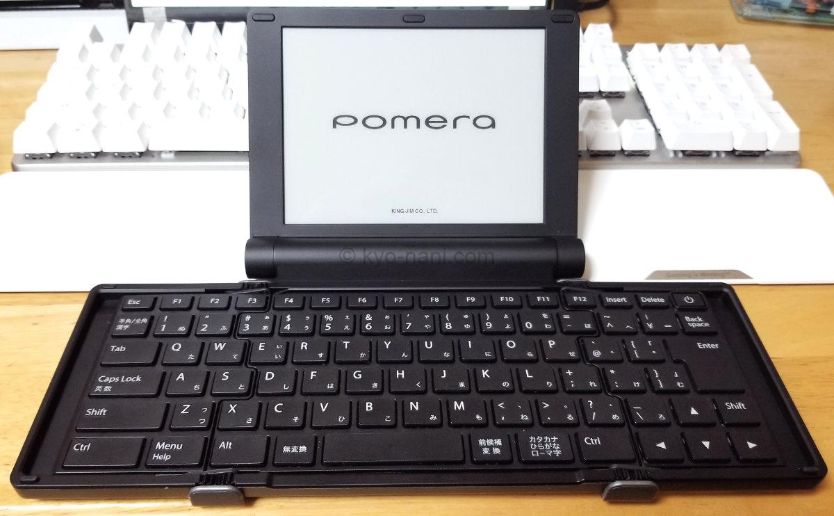 pomera(ポメラ)をキーボードと並べている写真