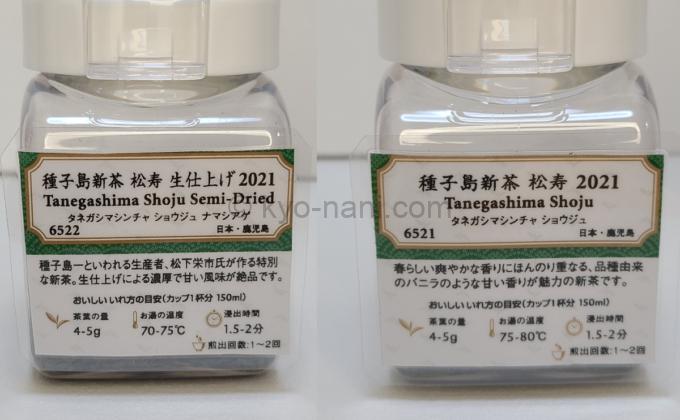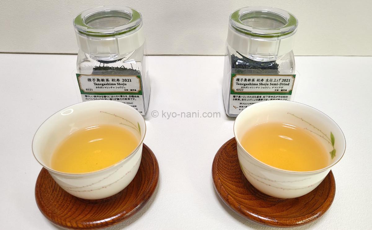 今回飲み比べるのは「種子島 新茶 松寿」と「種子島 新茶 松寿 生仕立て」の2種類です。
