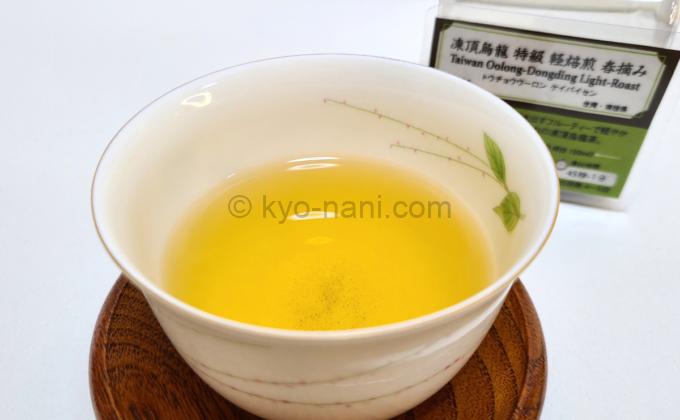 水色も味も、私のよく知る凍頂烏龍茶です。緑茶やジャスミン茶に似た黄色がかった緑がとってもキレイ。