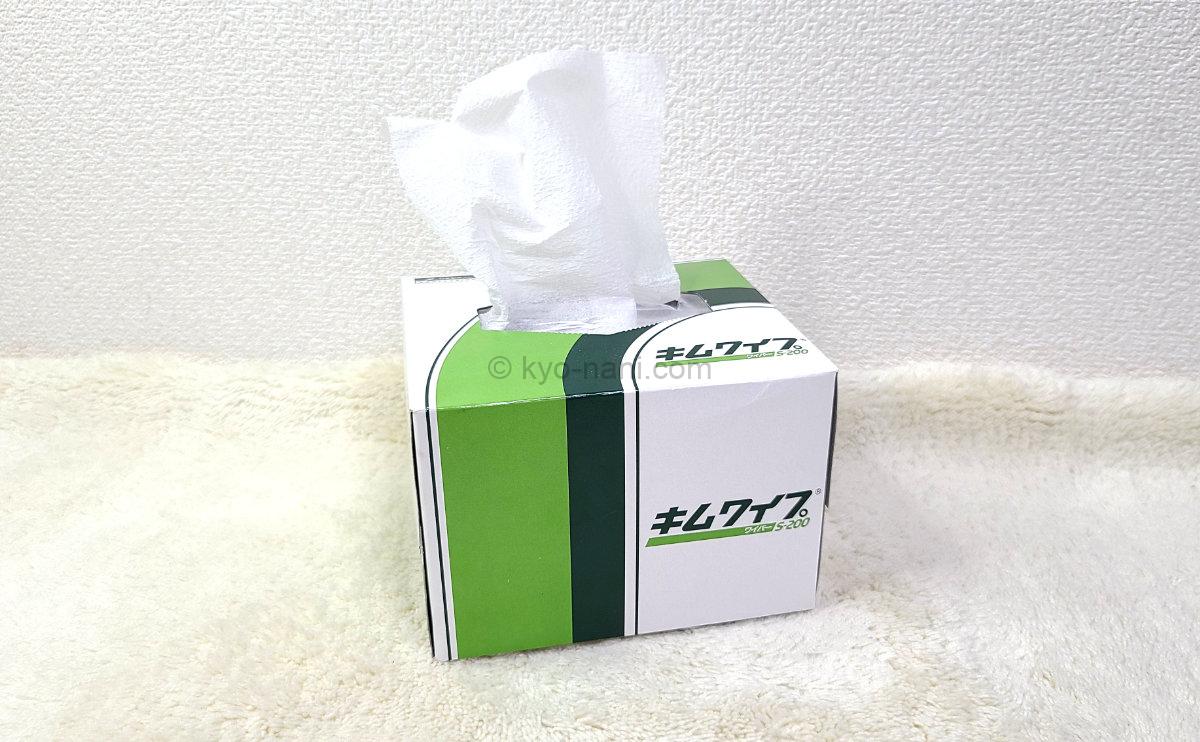 キムワイプは、ティッシュのようでティッシュより丈夫。ホコリが舞いにくく物を拭くことにとても長けたペーパーです。